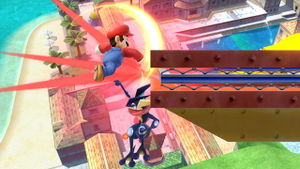 - 最後の切りふだとしては威力が弱く、相手を大きく吹っ飛ばすこともできない。撃墜を狙うときは場外に押し出す感覚で撃つべし。