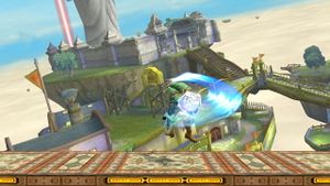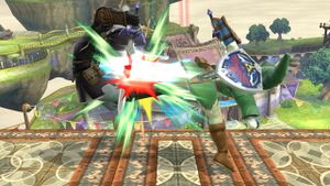 飛び道具が盾とリンク本体に同時にヒットした場合、盾へのヒットが優先される。よってリンクはダメージを受けない。